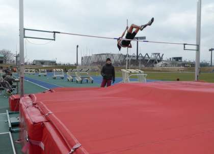 通信大会出場のための標準記録(2m20)突破を目標にしていましたが、結果は自己ベストタイの2m10でした。ですが、とても寒い時期の試合に積極的にエントリーする前向きな姿勢が光りました。