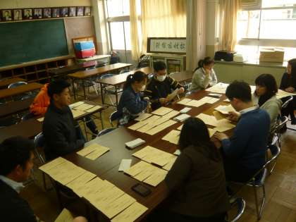 封筒詰め作業が終了し、お手紙をポストに投函させていただくため、学校を出発です。