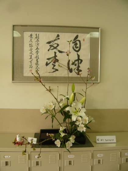 玄関には、春休みに生けてくださった見事な生け花が飾られています。