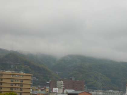 新緑が広がってきた山々も今日は、雲がかかっています。