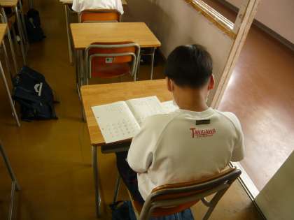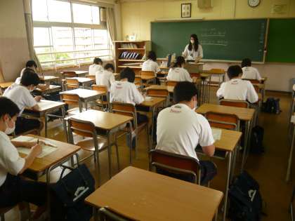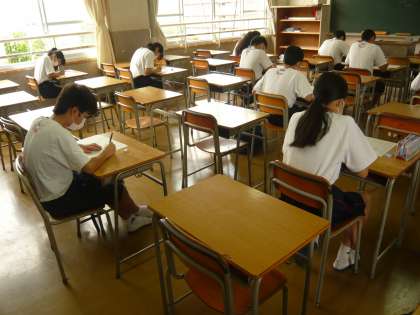 1限、2年1組のテストの様子です。
