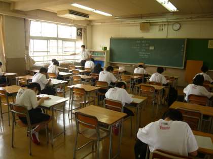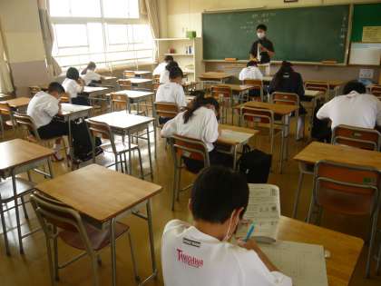 3限、1年生は理科のテストを受けています。これが中学に入って初めてのテストになります。緊張感や熱心さが伝わってきて良い雰囲気です。