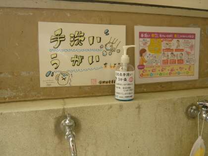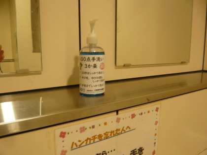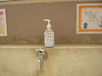 先日、大東青年会議所より寄贈いただいた液体石けんとポンプボトルは、各手洗い場、トイレに設置して、有効活用させていただいています。