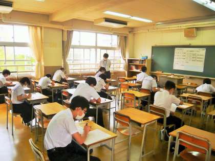 2限、3年1組理科のテストの様子です。真剣にがんばっています。