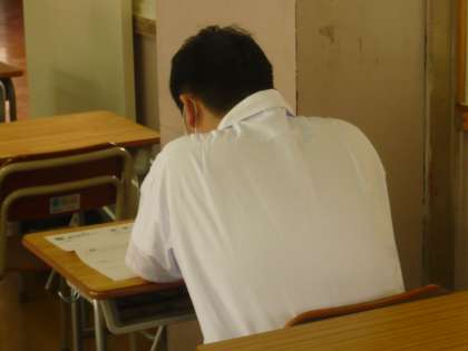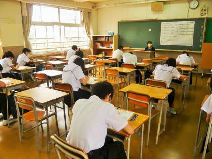 1限、3年3組数学テストの様子です。