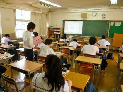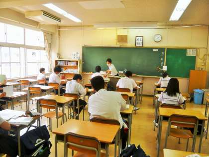 午後からの授業2限、3年4組は、社会と数学の授業です
