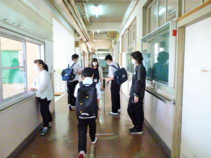 登校したら、1階で全員がアルコール消毒します。