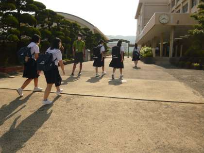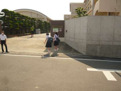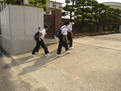朝の登校は、各学年3・4組の生徒たちです。