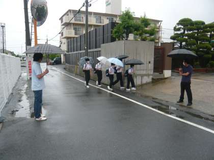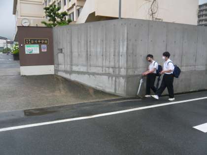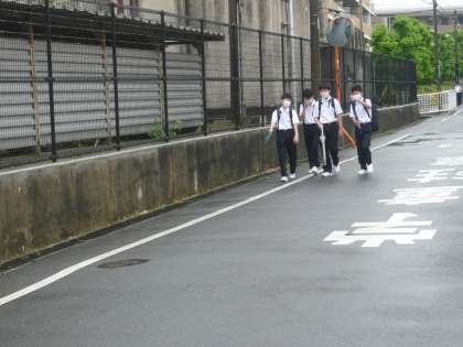 3・4組の生徒たちが登校する頃には、雨も小やみになってきました。