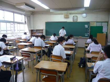 3年3組の様子です。成績や進路についてのお話を聞いています。