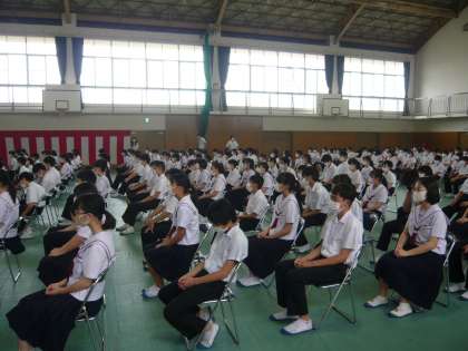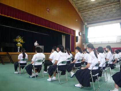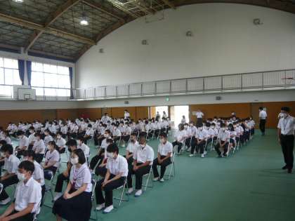 2・3年生は、13時30分に登校して、体育館で始業式を行いました。