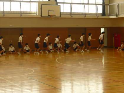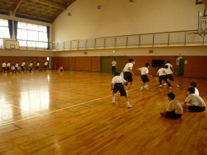 2限、2年1・2組は体育です。雨天のため体育館で行っています。