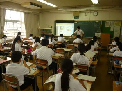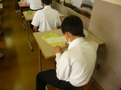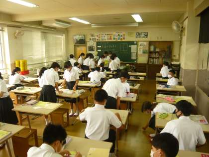2限、1年1組は社会、2組は美術の授業です。