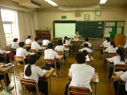 2限、1年3組は英語、4組は数学の授業です。