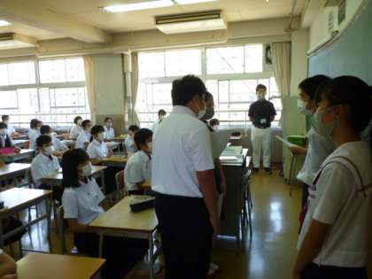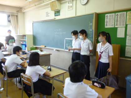 初めて生徒委員会の委員になった1年生への認証式を教室で行うため、生徒会役員が1年生の各教室を訪問しました。
