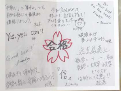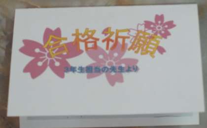 今朝、駅で一人一人に3年生の先生方から「合格祈願メッセージ」が手渡されました。