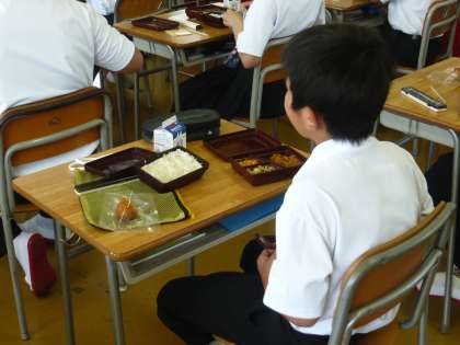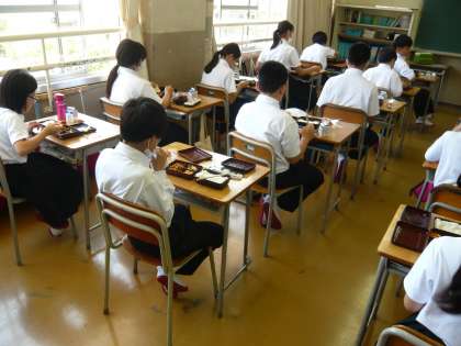 3限に写真を撮れなかった1年1組、2組の給食の様子を紹介します。
