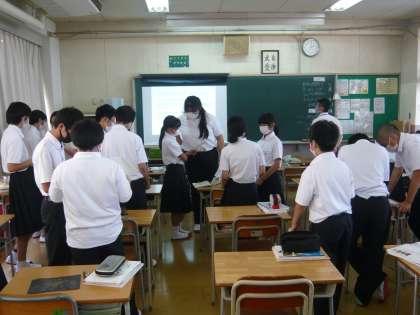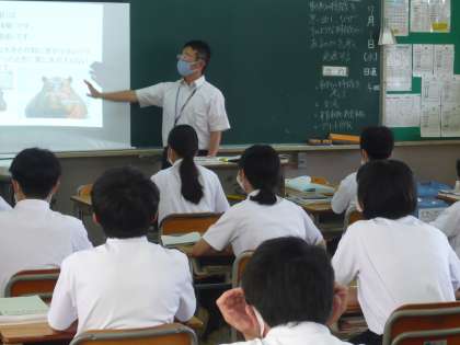 5限、1年3組で理科の授業力向上研修(研究授業)を行いました。