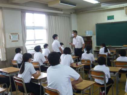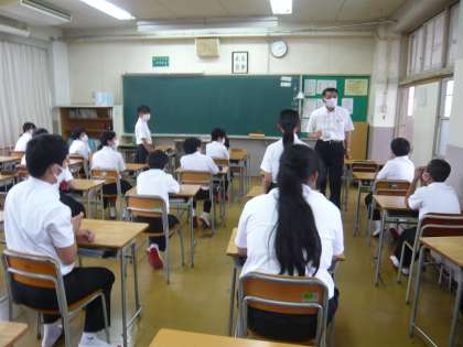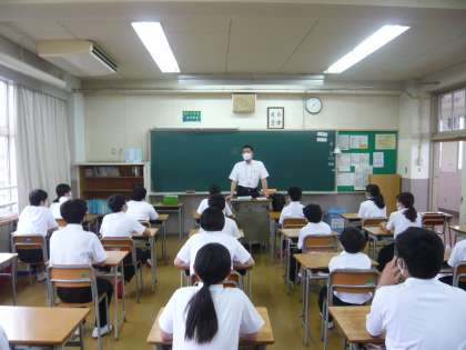 今日も教育委員会より元警察官の講師の方にお越しいただき、1年生で非行防止教室を行いました。