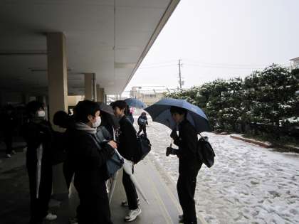 雪が降り続く中、3年生が公立高校前期選抜出願に向かいました。