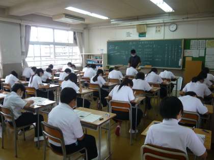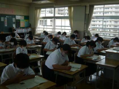 1限、1年1組、2組のテストの様子です。