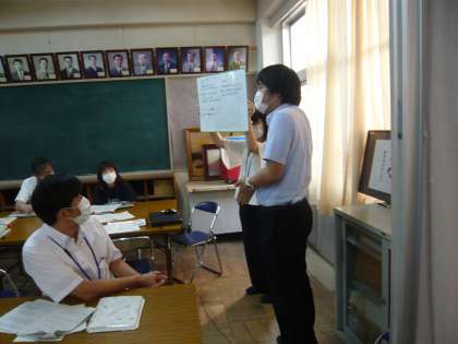 研究授業の後は、先生たちも研究協議で「学び合い」です。