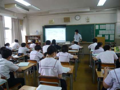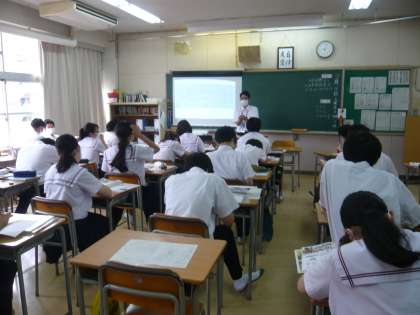 1限、3年3組は社会科公民の授業です。日本国憲法と大日本帝国憲法を比較しています。3年4組は理科の授業、電池の勉強?だと思います。