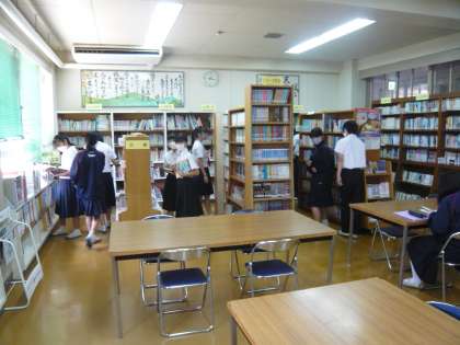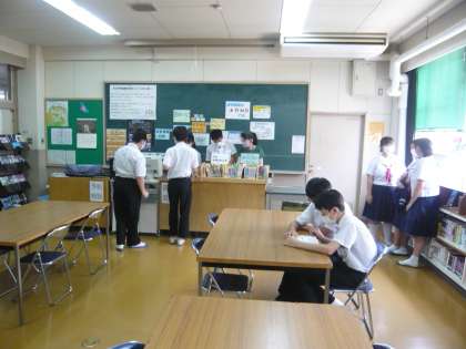 生徒たちが訪れて、本を読んだり借りたりして、憩いの場になっています。