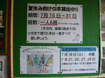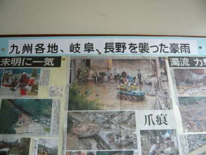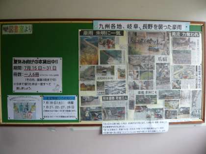 今回は、豪雨の被害についての新聞記事が掲示されています。