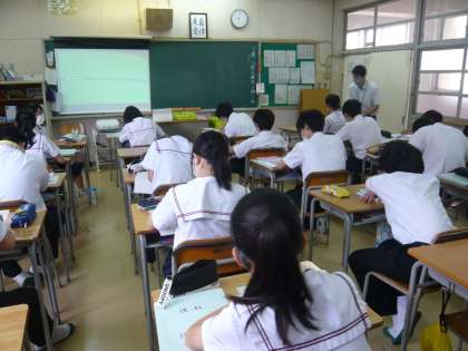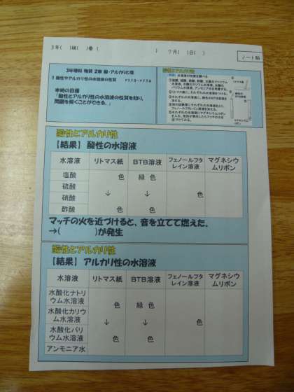 1限、3年3組は理科の授業でした。先生が配っているプリントはこれです。