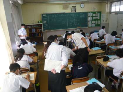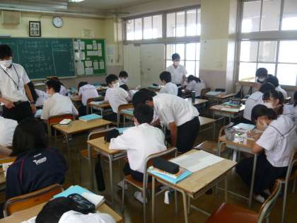 4限、2年3組で数学の授業力向上研修の研究授業がありました。