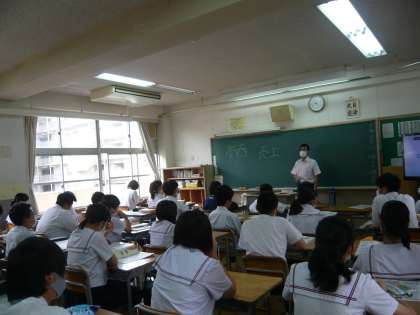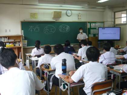 1限、3年4組での授業の様子です。写真のようなテキストで授業を進めていただいています。