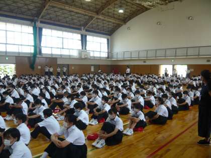 校長からは、いつもより長い2学期に全員で成長していってほしいこと、各学年に期待すること、新型コロナウイルス感染症予防に意識を高く持って行動すること等を話しました。