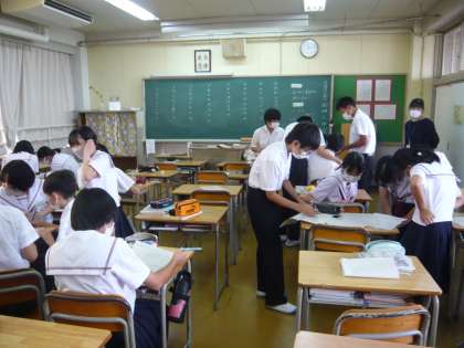3限、2年1組は国語で、テスト返しの後、先生から今回のテストについてお話がありました。2年2組は家庭で、食べ物の漢字の読み方をみんなで考えていました。