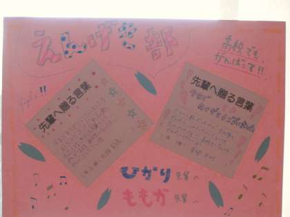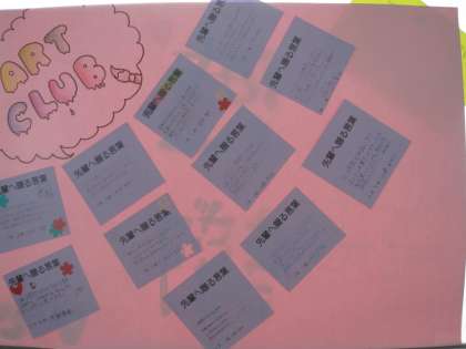 各クラブ、3年生から1・2年生へのメッセージ掲示に加えて、1・2年生から3年生へのメッセージもあります。