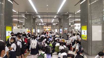 静岡駅に到着しました。雨が降ってきて、急いで駅構内に移動しました。