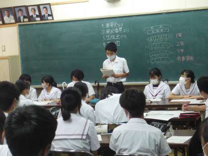 各生徒委員会から前期の反省、後期への引継ぎ等が発表されました。生徒会長からも後期の生徒会活動につながる話がありました。