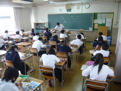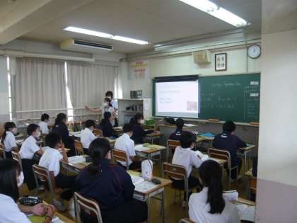 技術はプリントの問題に熱心に取り組んでいました。英語は、いつものように英語での発問が多いです。