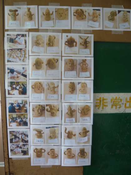 先日、1年生が近つ飛鳥博物館出前授業で作った埴輪の写真が貼られていました。
