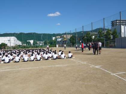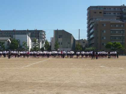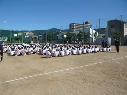6限、1回目の体育大会全体練習を行いました。はじめのあいさつ、礼の練習、開会式の練習と、体育大会実行委員が進行して練習を進めています。