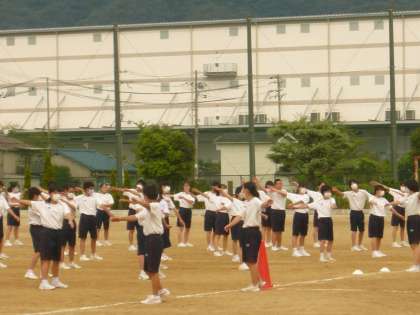 2年生のラジオ体操の練習です。各学年、今日練習したことが全体での練習につながればと思います。