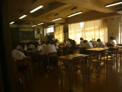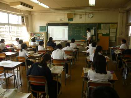 1限、1年1組は歴史で、奈良時代の学習です。1年2組は音楽で、中間テストに向けての学習をしています。