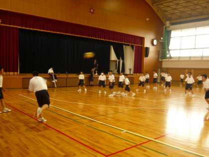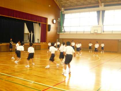5限、1年1・2組の男子体育は、体育館でドッジボールです。みんなうれしそうです。
