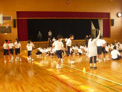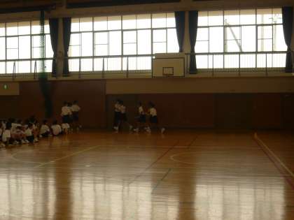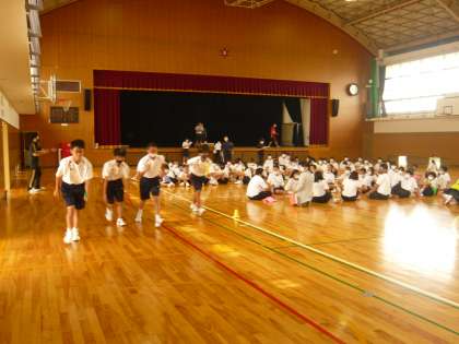全員リレーの練習を競歩でやっています。競歩でも盛り上がっています。
