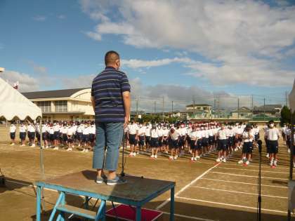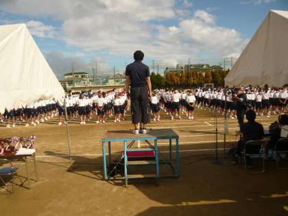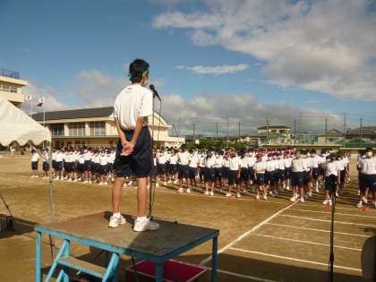 午前9時、予定通りに開会式が始まりました。生徒会長のあいさつもよかったです。ずいぶん練習を重ねたのだと思います。