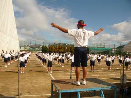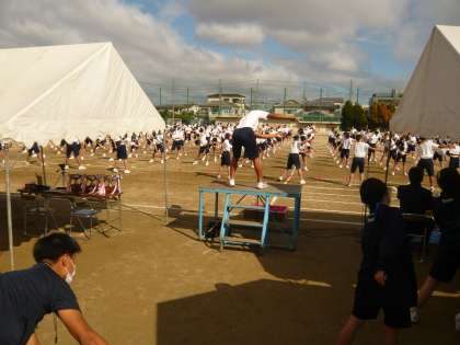 準備体操、今日が一番良かったです!ずいぶん上達しました。前に出て指示を出す人の動きも良かったです。退場もスムーズでした。