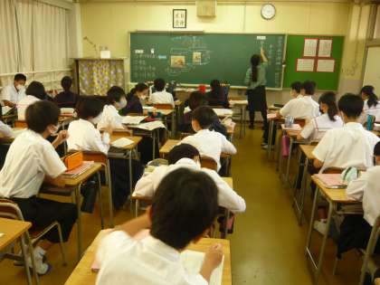 2年生は、総合の時間にパソコン教室を使うため、各クラス時間割を少し変更して授業をしています。6限、2年1組は技術、2年2組は国語の授業です。