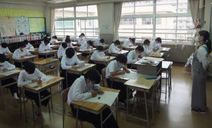 1年生の2時間目は、国語のテストです。