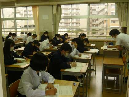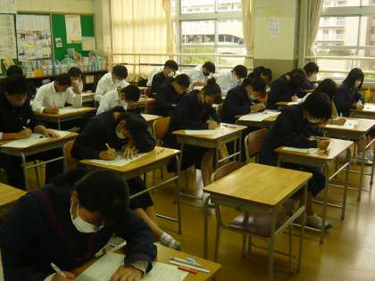 中間テスト2日目が始まりました。1限、3年生は数学です。1・2組の様子です。