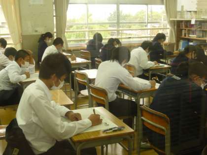 4限、いよいよ中間テスト最終の教科です。3年生は美術です。